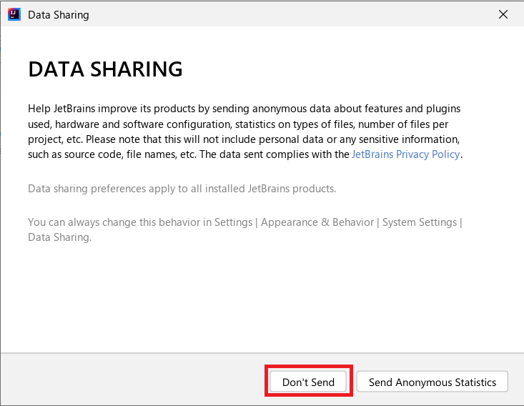 IntelliJ IDEAが起動し、利用規約の画面になります。