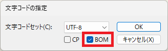 【UTF-8】の後ろに【BOM付】と記載があれば、開いているファイルがBOM付である、と確認できます。