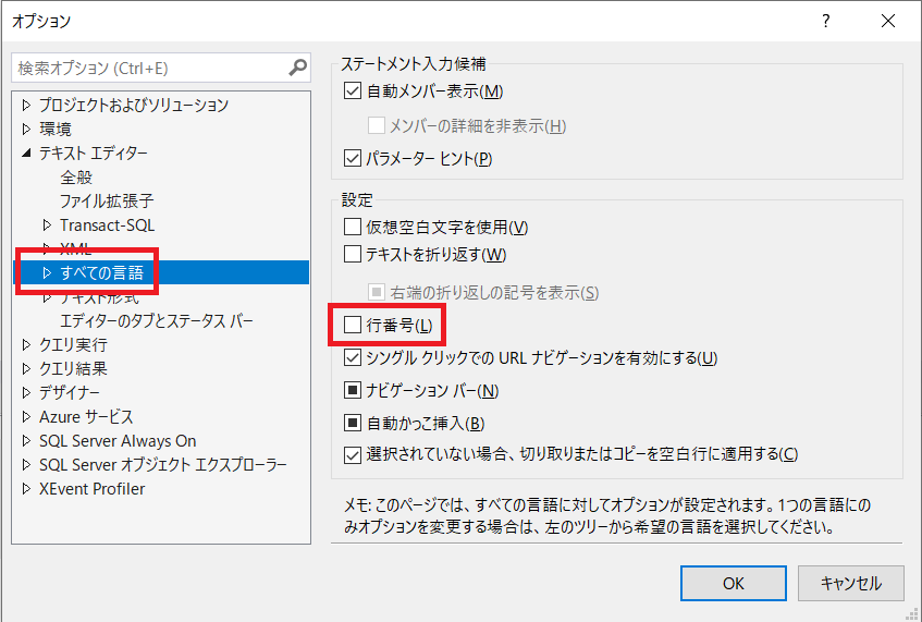 SQL Server Management Studioで行番号を表示するやり方を解説