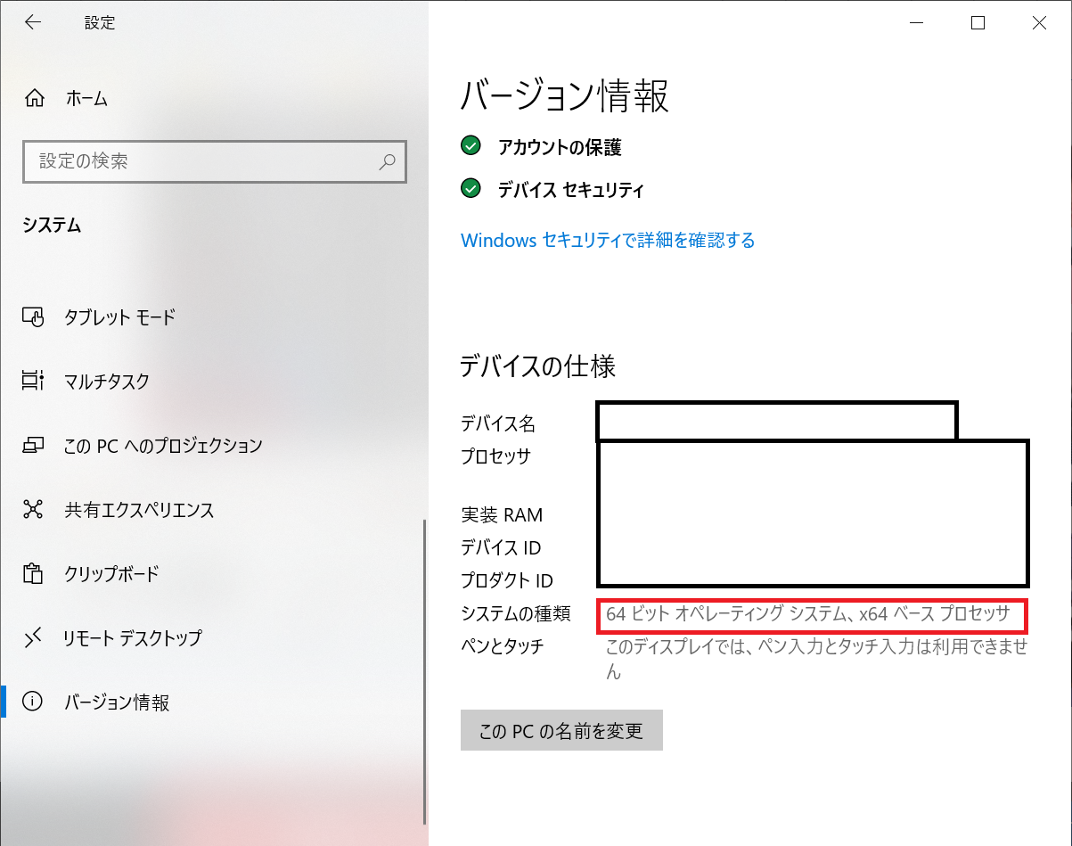 以上がWindows10のパソコンで何ビットなのかを確認するやり方の解説です。